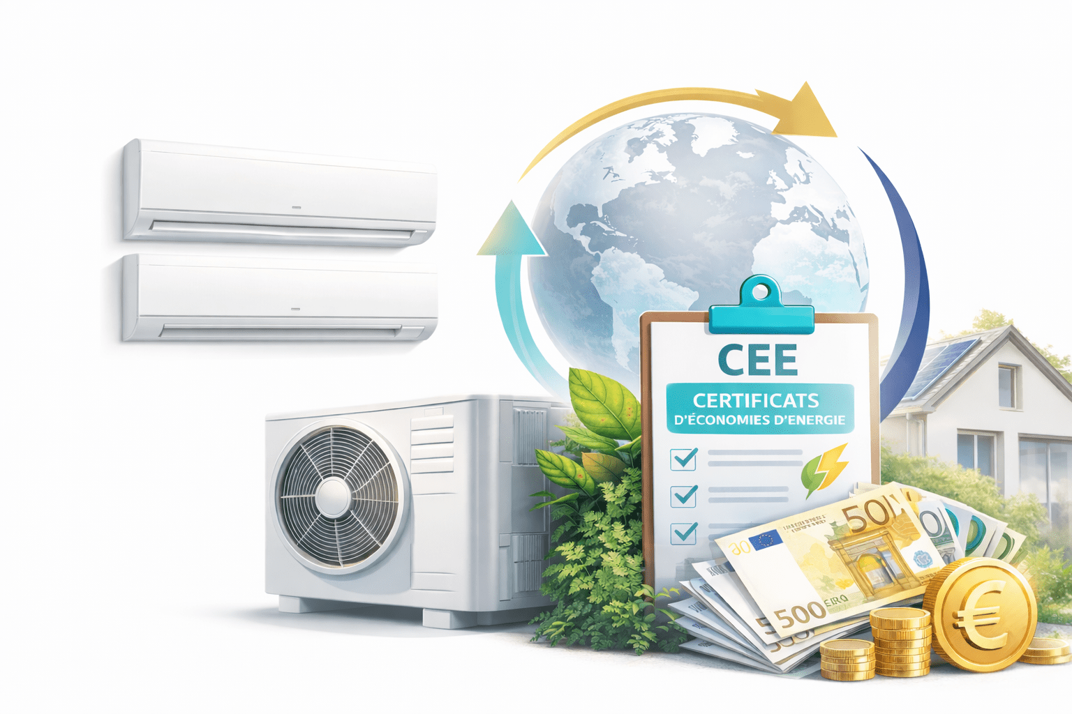 L’installation d’une pompe à chaleur air air vous permet de bénéficier d’une aide financière grâce au dispositif des Certificats d’Économies d’Énergie (CEE), à condition que les travaux soient réalisés par une entreprise ayant une qualification RGE comme la nôtre. Le montant reste modeste, mais il varie généralement entre 100 € et 900 € par groupe extérieur installé, ce qui représente un coup de pouce non négligeable. Il dépend du type de logement, de la surface à équiper, de votre situation ainsi que le rendement énergétique de l’appareil (SCOP). Même si de nombreux organismes proposent des simulateurs pour estimer vos droits et effectuer vos démarches; nous vous invitons à vous orienter vers Primes EDF dont nous sommes partenaire via Synerciel. Nous restons bien entendu à votre disposition pour vous accompagner à chaque étape.